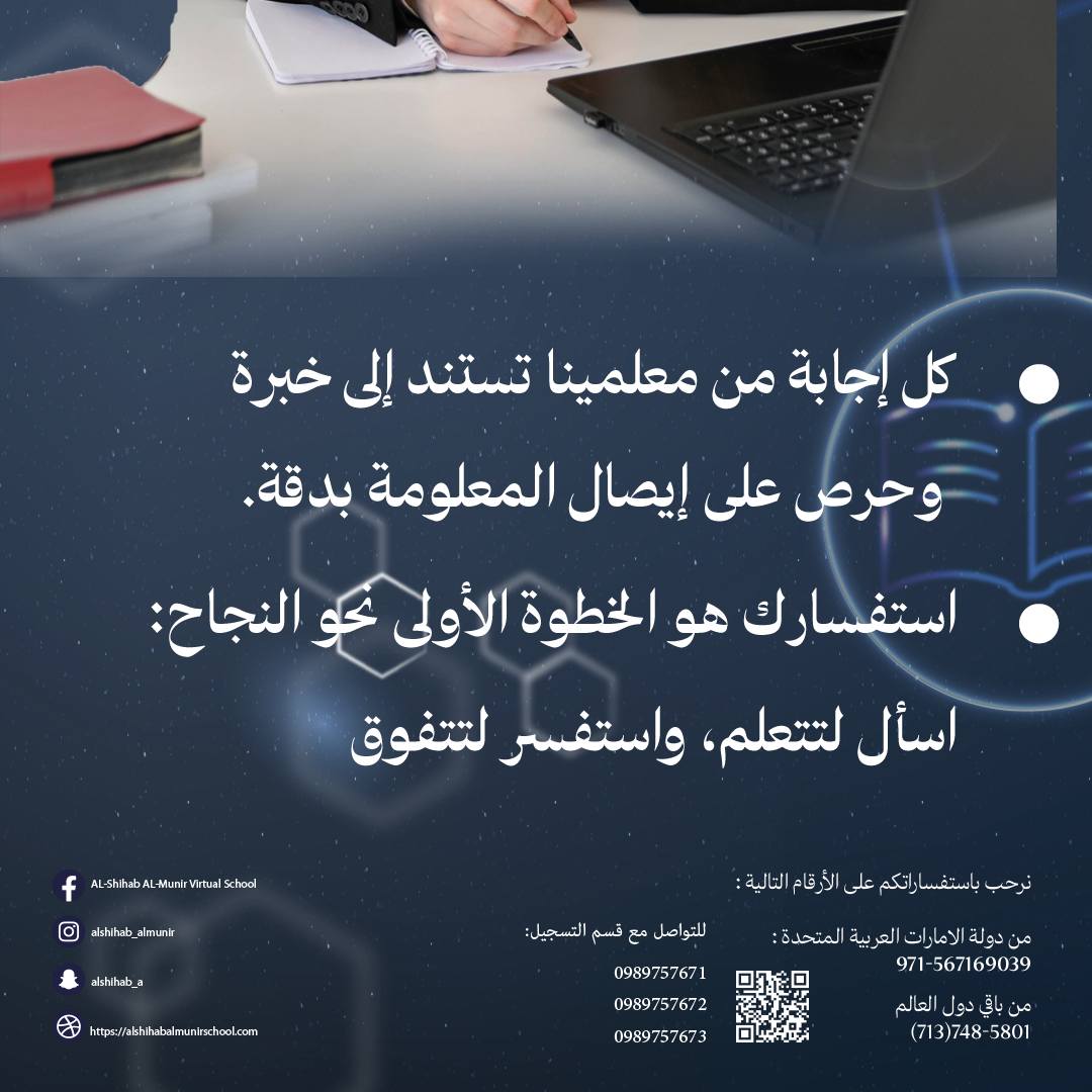 معلمو الشهاب المنير دائماً مستعدون للإجابة على أسئلتك لضمان فهمك الكامل