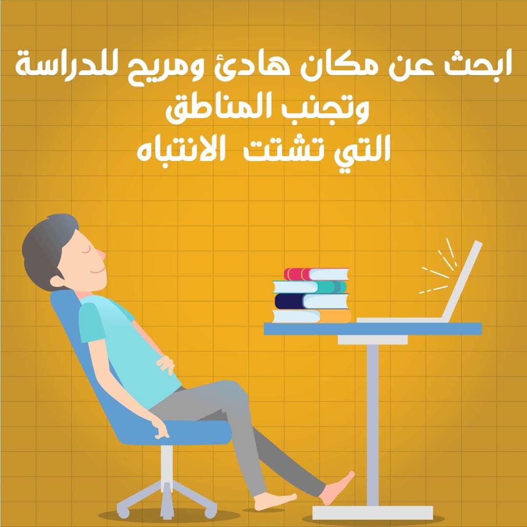 2-ابحث عن مكان هادئ ومريح للدراسة، وتجنب المناطق التي تشتت الانتباه