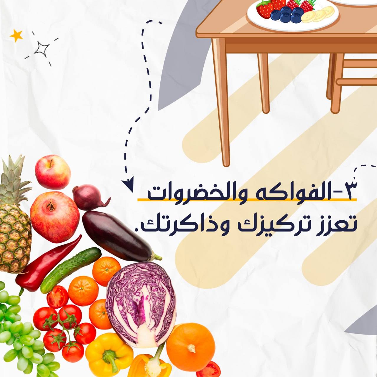 الفواكه والخضروات تعزز تركيزك وذاكرتك.