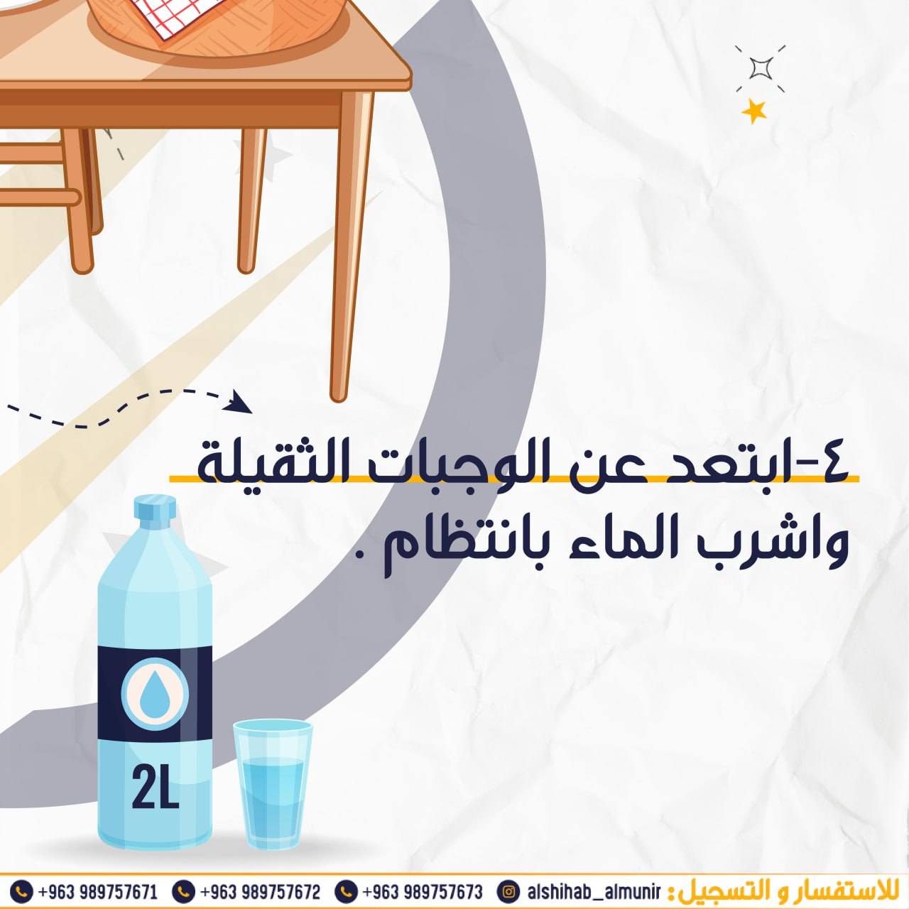 ابتعد عن الوجبات الثقيلة... واشرب الماء بانتظام.