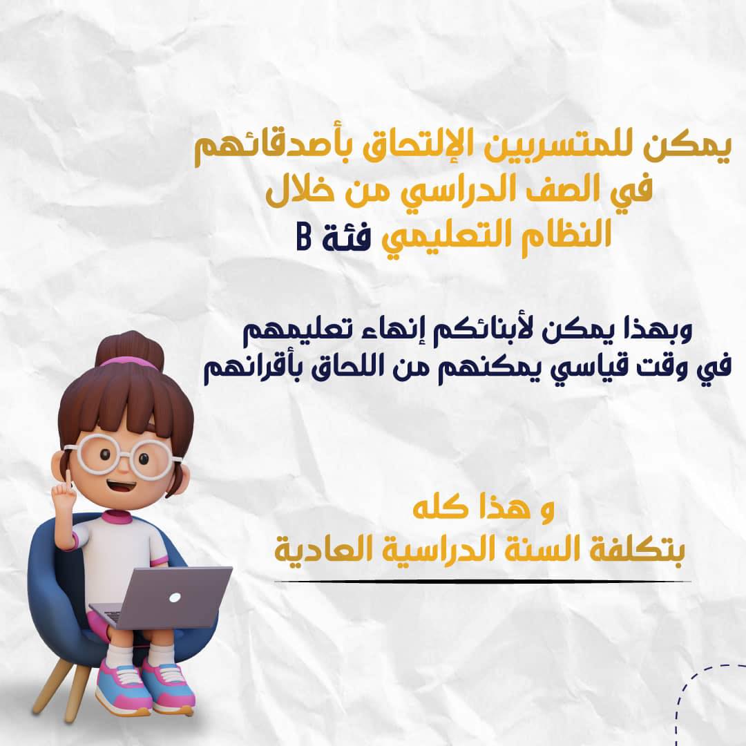 يمكن للمتسربين الالتحاق بأصدقائهم في الصف الدراسي من خلال النظام التعليمي فئة ب